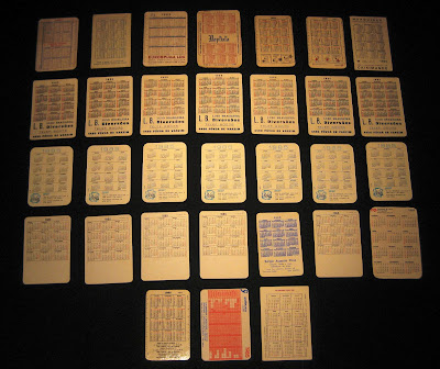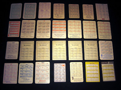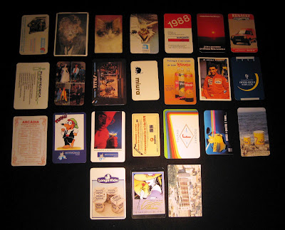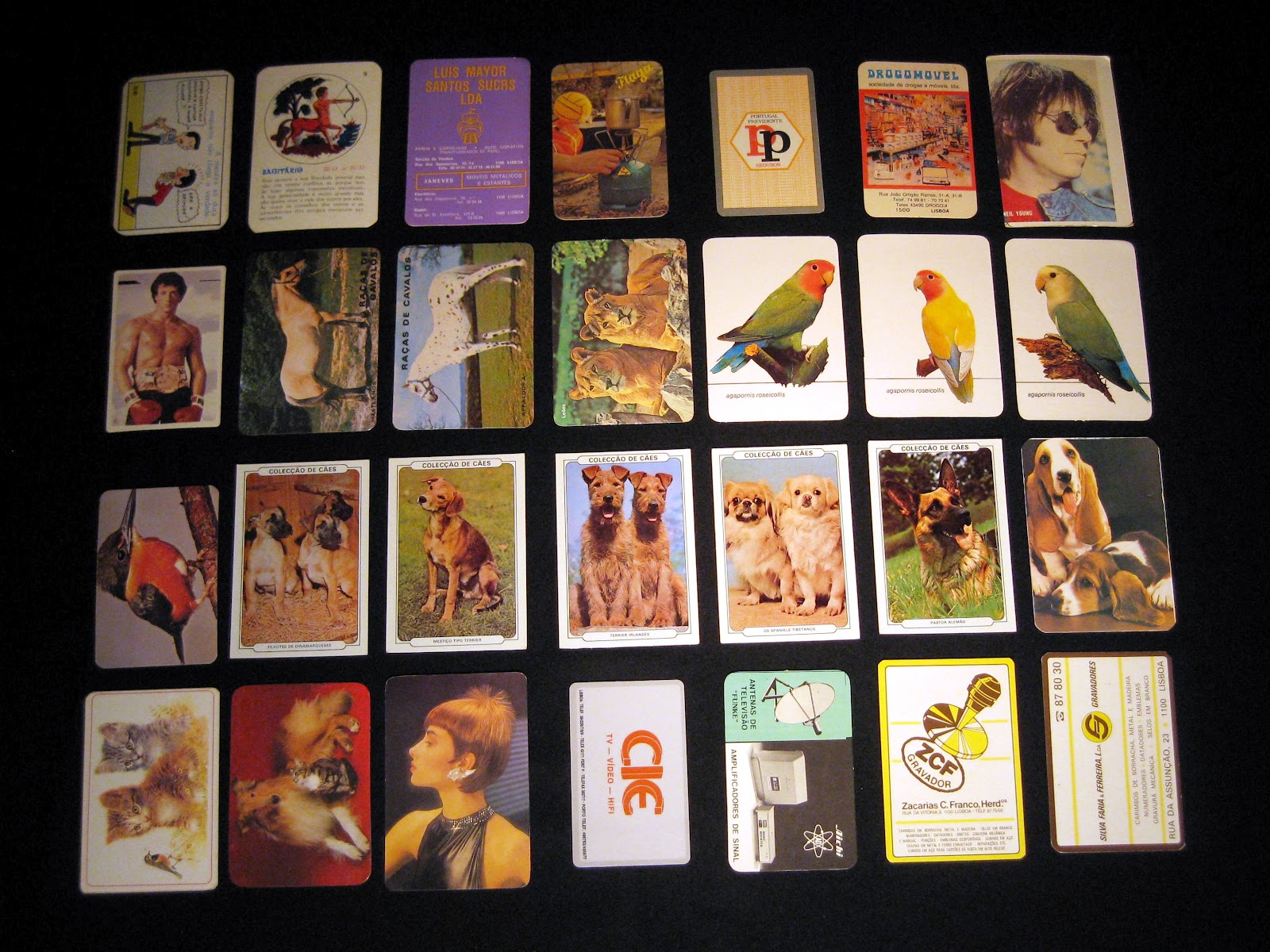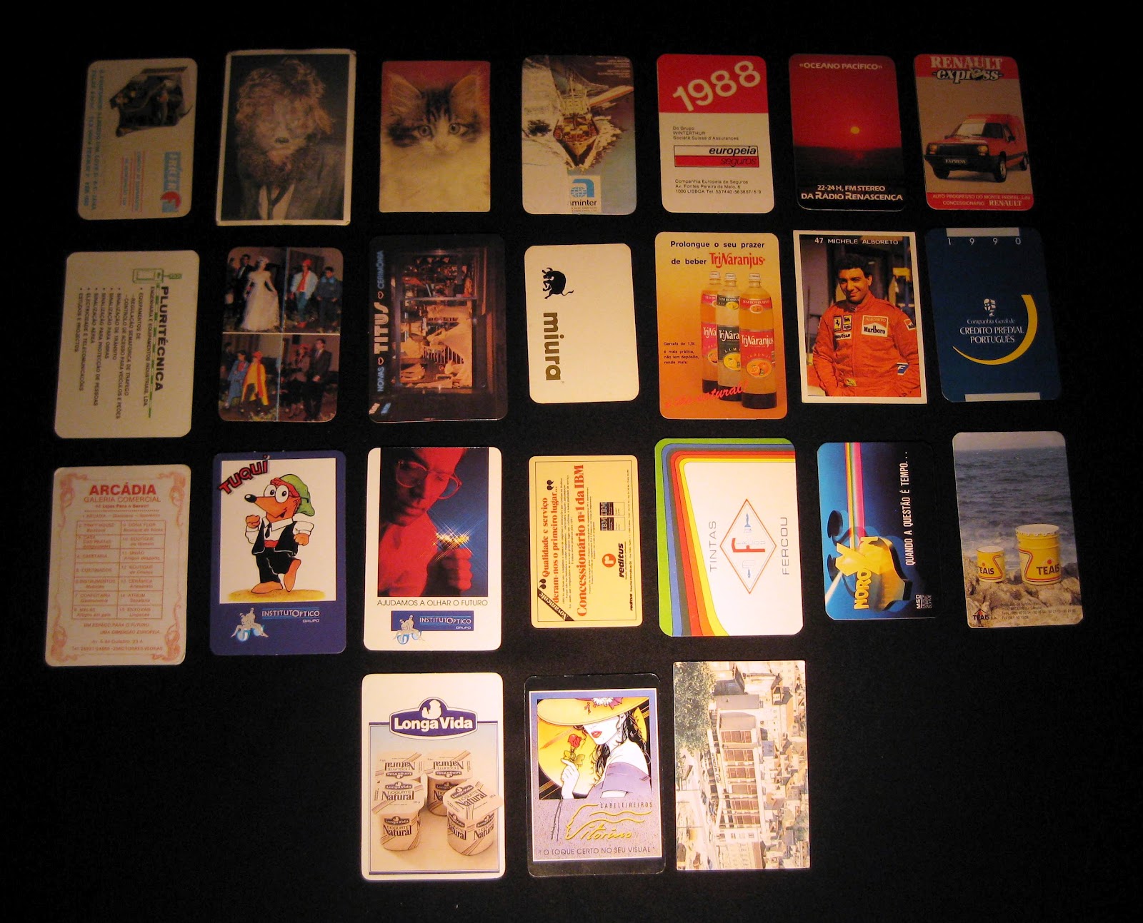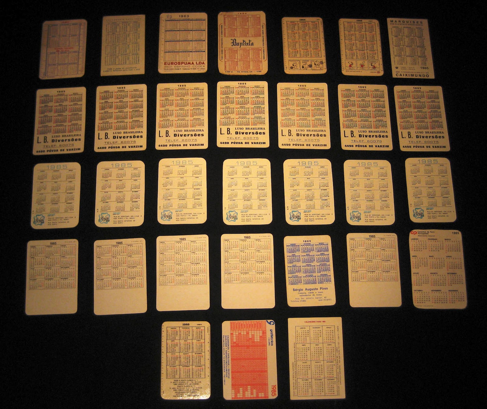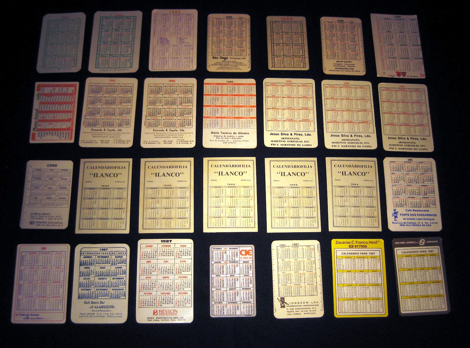Eia! Já nem me lembrava que tinha isto. Até que estava a pensar em colecções e, enquanto estava à procura de uma outra, encontrei esta, o que me deixou muito mais feliz. Esta é uma colecção de calendários, o mais antigo é de 1983. Não é muito, é certo, mas fiquei completamente maravilhada a ver isto. Esta colecção é minha mas na realidade só contribui com dois ou três. "Herdei-a" já há muito tempo e na altura estava cheia de vontade de a continuar até que me esqueci. Agora penso novamente em continuar. Talvez encontre mais relíquias destas na feira da ladra.